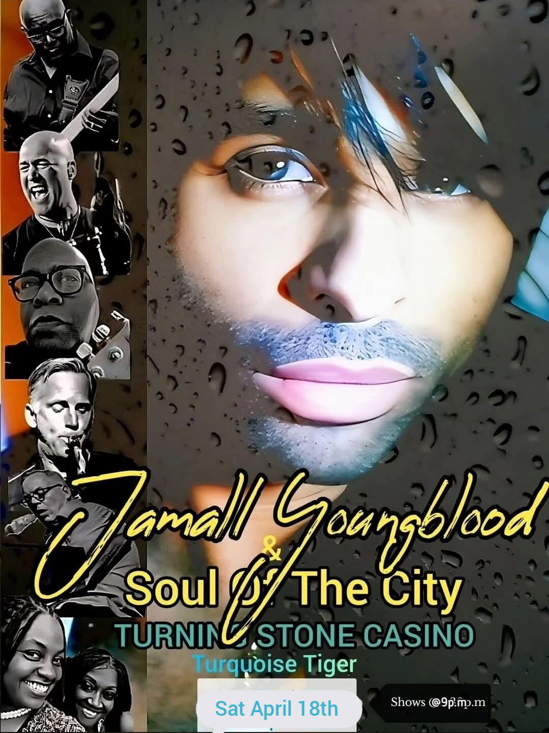 Jamall Youngblood and Soul Of The City is back to bring more of the Funk and Soul to the Turning Stone Casino in Syracuse, NY. Join Jamall Youngblood and Soul Of The City as they take the stage at Turning Stone’s Turquoise Tiger on Saturday, April 18th at 9:00pm.